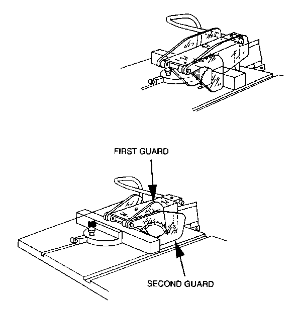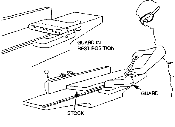 | Self-adjusting | Provides a barrier that moves according to the size of the stock entering the danger area | Off-the-shelf guards are often commercially available | Does not always provide maximum protection May interfere with visibility May require frequent maintenance and adjustment |
